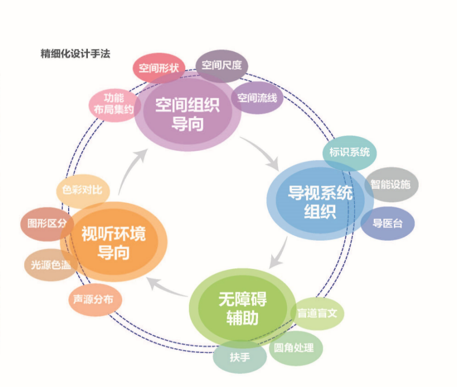 更細致的是針對眼病患者視覺特點的定制設計:用高對比度色彩和材質幫助識別方向,設智慧導視系統,優化自然采光并避免眩光。從白內障到青光眼,不同患者的需求被納入空間語言。配合智慧醫院框架,預約、檢查、護理全程信息貫通,減少等待與焦慮。在這里,建筑不只是容器,而成為治療的一部分,從“治愈疾病”升華為“療愈心靈”。
